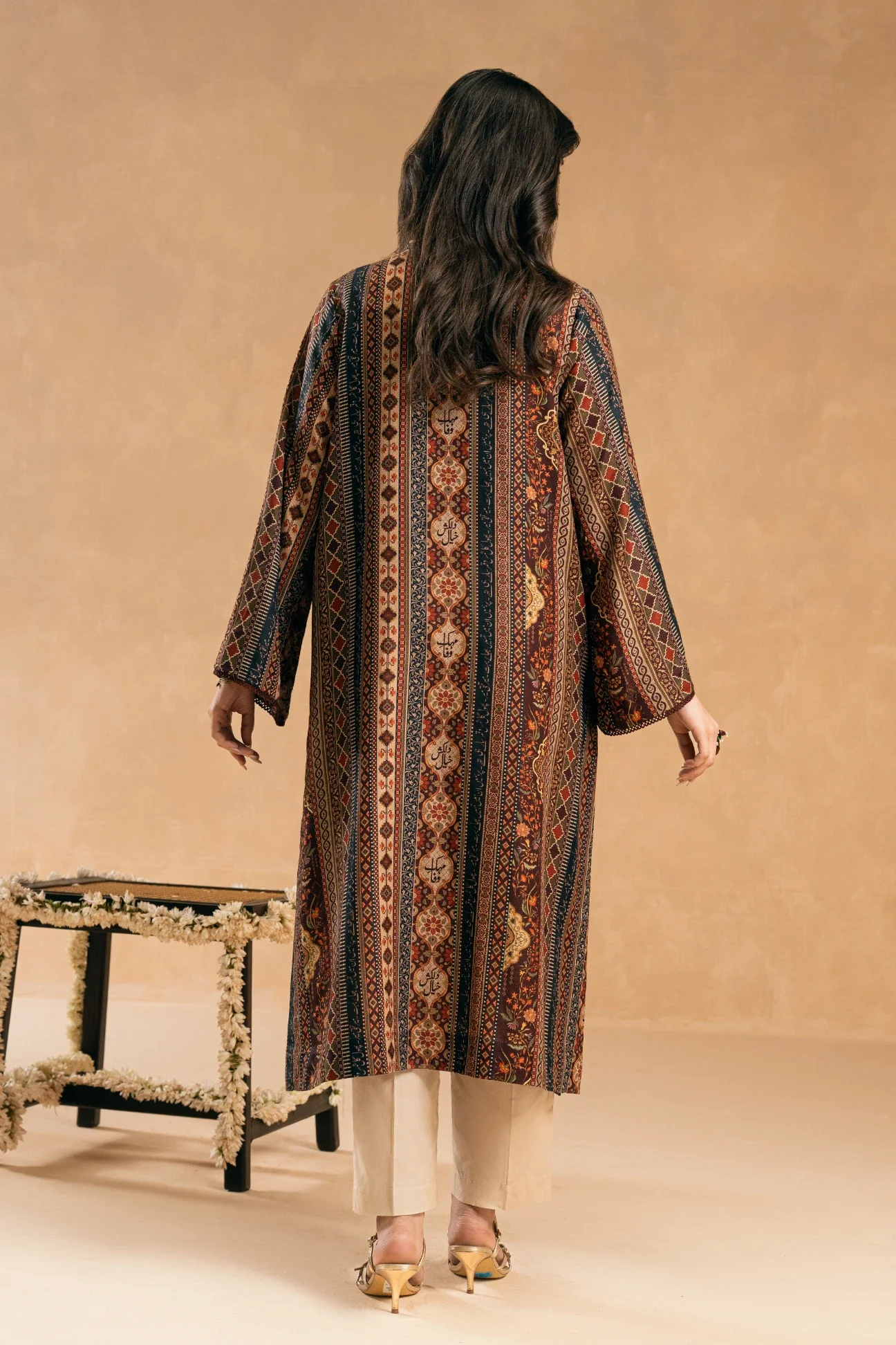 Dilnaaz Kurta, made from summer jacquard, featuring the words of Mir Taqi Mir calligraphed throughout.