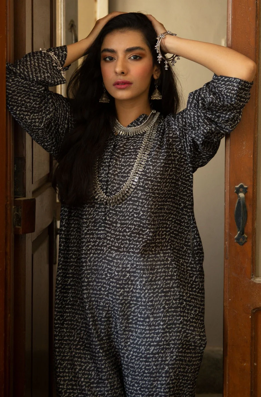 Loose-fit printed breathable lawn kurta, made from 100% cotton. Available in 4 Colors, featuring Urdu calligraphy poetry by Saadat Hasan Manto.